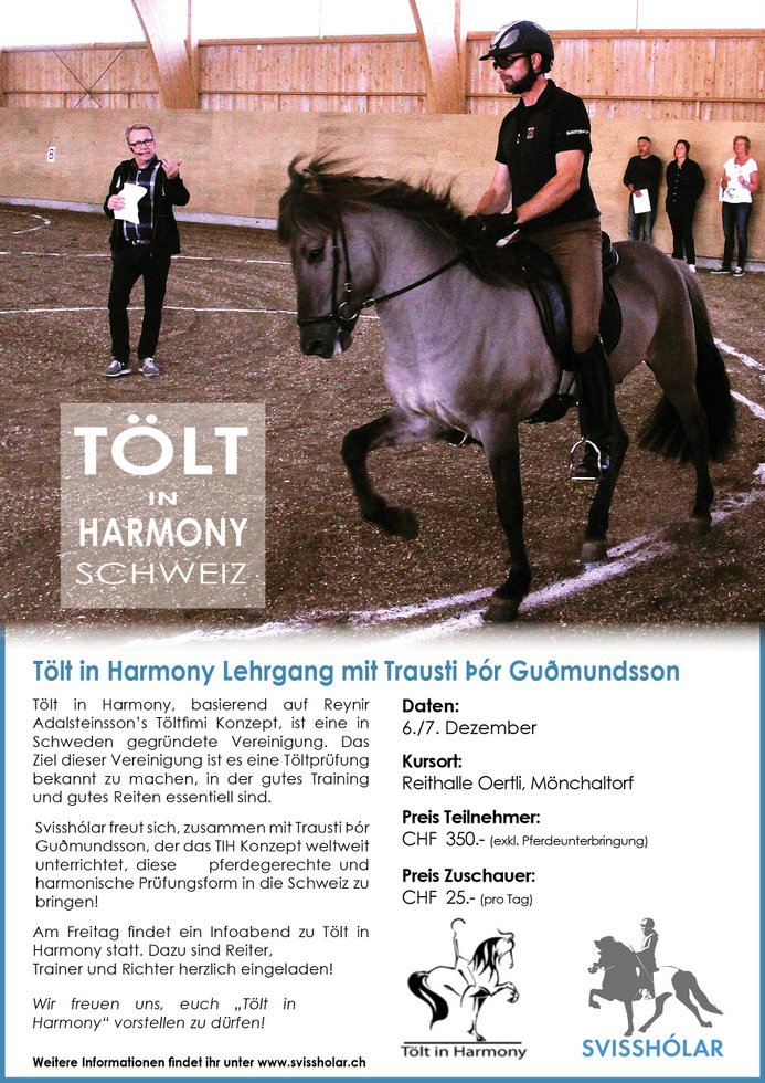 Ich freue mich sehr, im Dezember den ersten Tölt in Harmony Kurs mit Trausti Þór Guðmundsson durchführen zu dürfen. Die offizielle Ausschreibung folgt in Kürze.